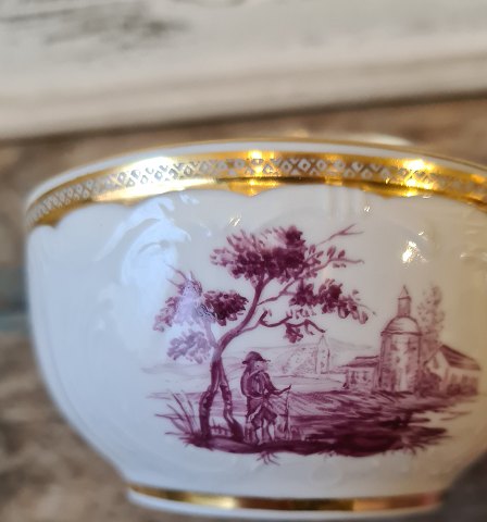 Royal Copenhagen Juliane Marie - large teacups decorated with landscape and flowers in purple and gold Sold |