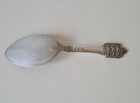 Serveringsspade i sølv dekoreret med Danmarks rigsvåben produceret hos Cohr i 1944