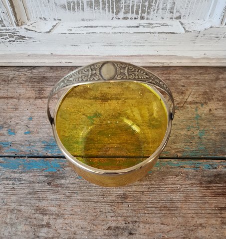 1800s sugar bowl in beautiful yellow glass with brass mounting