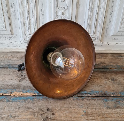 Kobber pendel - oprindeligt gadelampe fra København Fremstår med super lækker patina, kan naturligvis pudses op. Højde 31 cm. Diameter 30 cm.