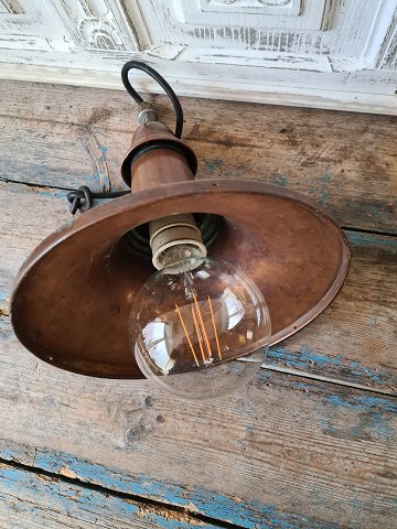 Kobber pendel - oprindeligt gadelampe fra København Fremstår med super lækker patina, kan naturligvis pudses op. Højde 31 cm. Diameter 30 cm.