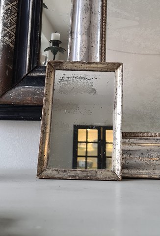 1800s small mirror in beautiful simple silver frame 13 x 18.5 cm.