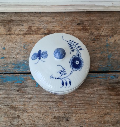 Royal Copenhagen Blue Fluted bonbonniere with butterfly Factory first. Height 9 cm. Diameter 11 cm. With small chip inside the bowl itself. Produced between 1923-35