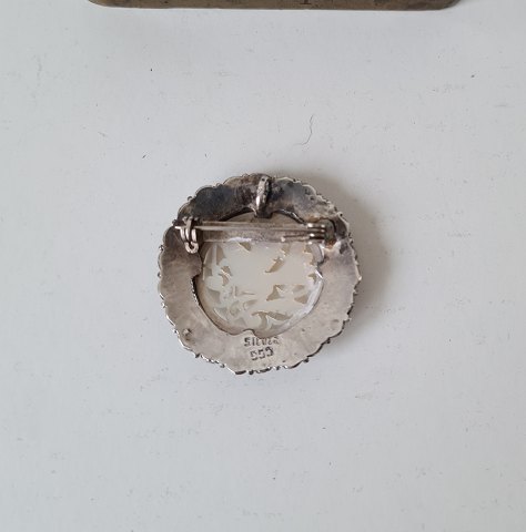 Orientalsk sølv broche/vedhæng prydet med et stykke smukt udskåret perlemor