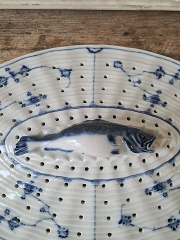 Royal Copenhagen Musselmalet riflet antik sjælden fiskerist med torsk som håndtag. Produceret i 1800tallets første halvdel.