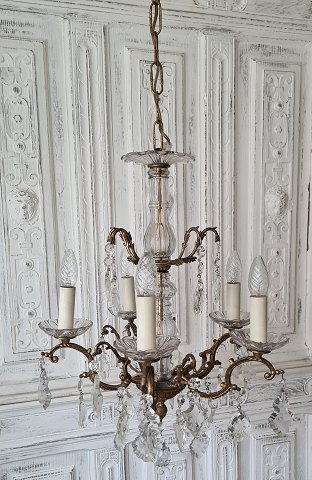 Very beautiful 5-armed chandelier hung with numerous large crystals.