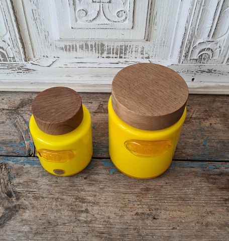 Holmegaard Palet the & kaffe opbevaringsglas i gult glas med træprop