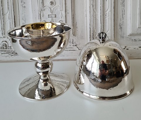 Caviar bowl in the shape of an egg on a stand, made by Holmsted in sterling silver 28 cm.