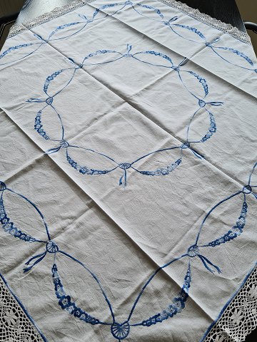 Embroidered tablecloth with Empire pattern With a small finely executed repair - see picture Dimensions 130 x 130 cm.