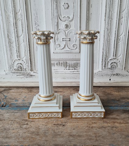 Royal Copenhagen par meget smukke søjle lysestager. Juliane Marie mærket no. 1016