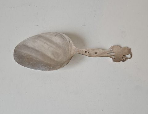 Serveringsspade i sølv dekoreret med blomst fra 1947 Stemplet de tre tåren 1947 - HS Længde 16,8 cm.
