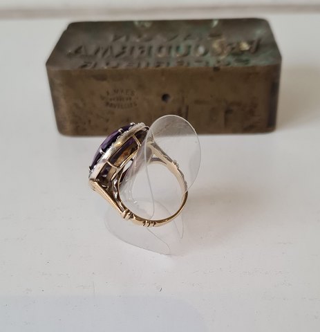 Antik 14 kt guldring - stor smuk ametyst omkranset af talrige diamanter
