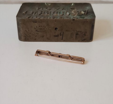 Art Deco brooch in 14 kt gold with diamonds The center diamond weighs about 0.1 ct, this is flanked by 10 single cut diamonds. Stamp 585 - H.F - H. Fischer - Copenhagen 1893 - 1937 Dimensions 5 x 45 mm.