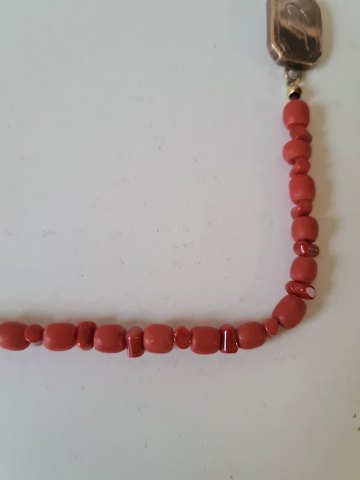 Antique long coral necklace with beautiful wide lock in 8 kt gold.