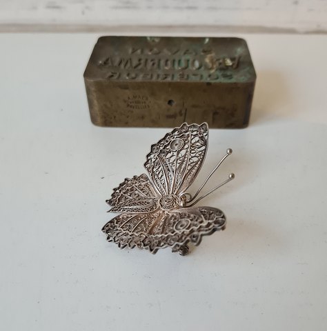 Large silver filigree brooch in the shape of a butterfly
