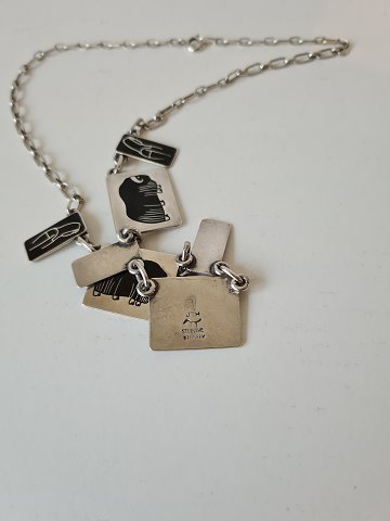 Vintage halskæde i sterlingsølv og sort emalje af Jens Tage Hansen med Grønlandske motiver