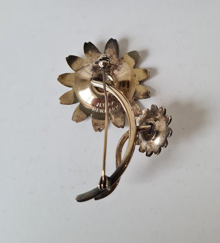 Vintage brooch with two flowers in gilded sterling silver and enamel Stamped: Jemax - Sterling - Denmark