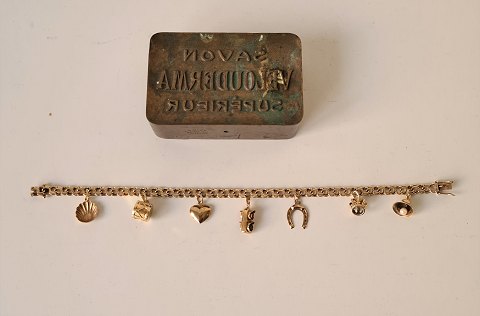 Vintage Bismarck bracelet in 14 kt gold with seven charms