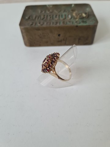 Vintage ring i forgyldt sølv med talrige smukke mørke granater. Stemplet: 830 - H.Gr - Hugo Grün Ringstørrelse: 52