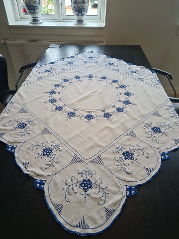 Embroidered tablecloth with blue fluted pattern 127 x 127 cm.