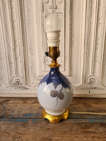 Royal Copenhagen Art Nouveau bordlampe dekoreret med humleblade og humleblomst, monteret på forgyldt bronze fod |