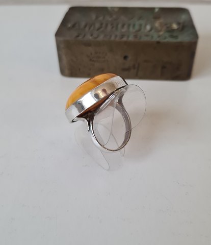 Vintage sølv ring med stor polleret ravklump Stemplet 925 - WK Mål på ravklumpen: 26 x 35 mm. Ringstørrelse 49