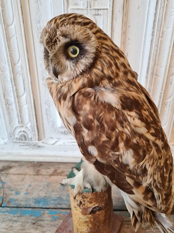 Meget flot udstoppet moseugle monteret på birkegren.