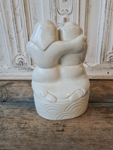 Royal Copenhagen - Georg Thylstrup - Juliane Marie Blanc de Chine figur - to munke med fisk No. 1605, 1. sortering Højde 22 cm.
