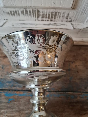 19th century candy bowl in mercuri silver, finely decorated with flowers and birds. Height 15 cm. Diameter 14,5 cm.