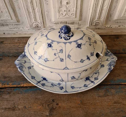 Royal Copenhagen Blue fluted large oval terrine no. 216 on saucer no. 219
