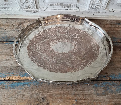 Oval forsølvet bakke med gallerikant, bakken står på små "ball and claw fødder"