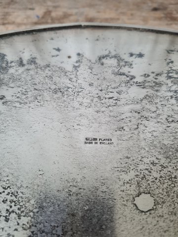 Oval forsølvet bakke med gallerikant, bakken står på små "ball and claw fødder"
