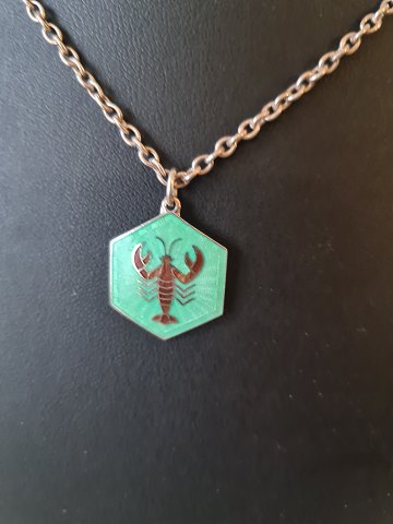 Halskæde med vedhæng af David Andersen i form af stjernetegnet krebsen i rødt og turkis emalje