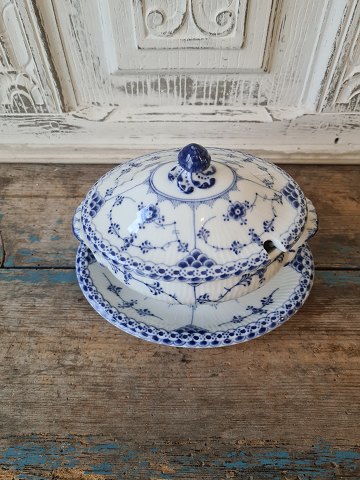 Royal Copenhagen Blue fluted half-lace sauce terrine No. 588, Factory second Height 15 cm. Length 22 cm. Produced between 1898-1923