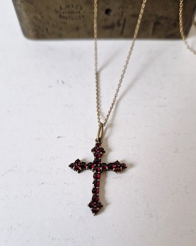 Beautiful old garnet cross in a gold-plated necklace. Measurements on the cross 20 x 27 mm. Length of the necklace 40 cm.