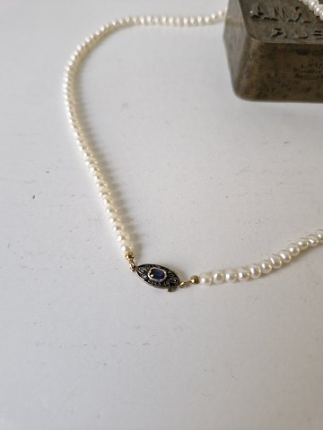 Freshwater pearl necklace with antique sapphire & diamond lock in gold & silver.