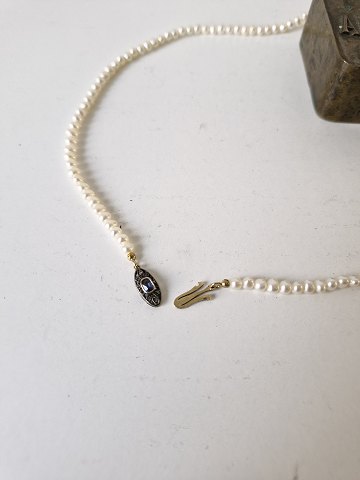 Freshwater pearl necklace with antique sapphire & diamond lock in gold & silver.