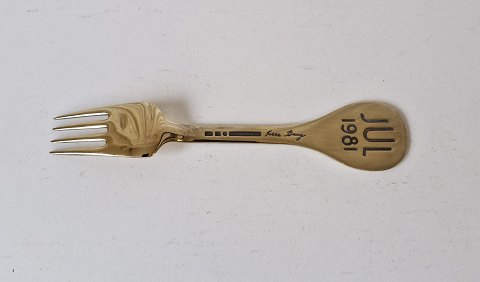 A.Michelsen Christmas fork in sterling silver with enamel 1981 Stamp: A.Michelsen - Sterling - Denmark Length: 16.3 cm. Design: Falke Bang