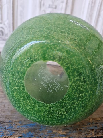 Kosta Boda kande i græsgrønt glas med snoet lilla hank