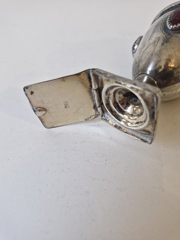 Main water egg in silver with red, blue and green glass flocs. Silversmith Jochum Carl Gorm Bisgaard 1800-1872 Horsens