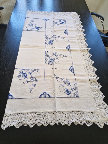 Dug smukt broderet med blå blomster 134 x 134 cm.
