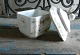 Fransk 1800tals sukker skrin, dekoreret med blomster og tekst Suiwenir, bliver også kaldt nonne porcelæn. Mål 8x11cm. Højde 13cm.