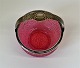 1800tals lyserød sukkerskål med forsølvet hank. Hanken fremstår afpudset nogle steder. Højde 7cm. Diameter 11cm.
