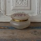 Stort smykkeskrin i glas med forgyldt bronze montering. Smuk håndmalet dekoration. Højde 9,5cm. Diameter 13,5cm.