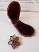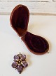 Victorian jewelery with amethyst, a real pearl and silver. Can be worn as brooch or pendant. Original box included. Diameter 3.5 cm.