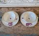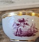 Royal Copenhagen Juliane Marie - store tekopper dekoreret med landskab og blomster i purpur og guld