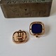 Vintage øreklips i 14 kt guld med plade af blå sten. Stemplet 585 Mål 1,9 x 2,3 cm. Vægt 11,8 gram.