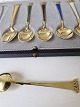 Sæt på 6 stk kaffeskeer i forgyldt sterlingsølv og emalje dekoreret med en kongekrone