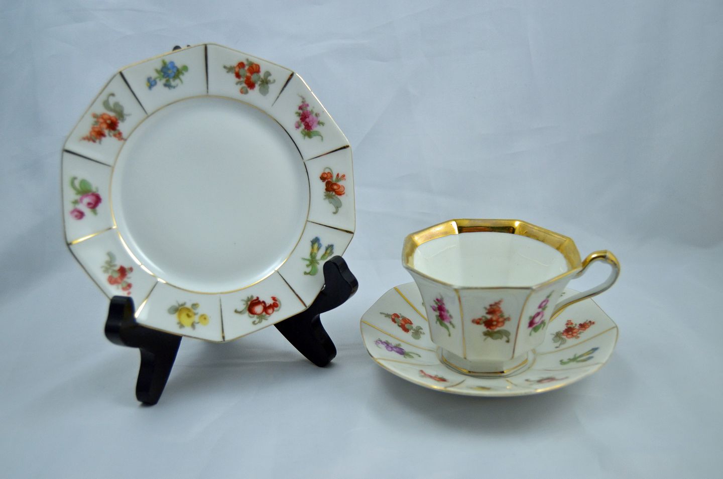 Charmerende stel Bavaria "Tirschenreuth". Mange forskellige dele. 10 sæt Kopper, underkopper og Kagetallerkener. forskellige kagefade, sukkerskål og flødekande med underfad.