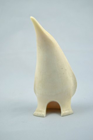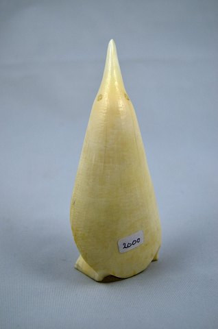 Figur af en pingvin udskåret af stødtanden fra en hvalros. Pingvinen er meget flot forarbejdet og i flot stand. Højde: 11 cm. Pris: 2000 kr. Varenr.: 204594